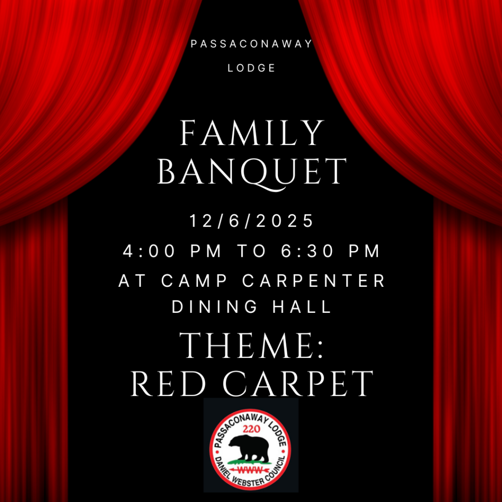 Join us on December 6th at the Camp Carpenter Dining Hall for the 2025 Lodge Banquet